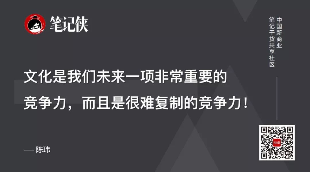 文化这个东西,总是体现在方方面面各种细节当中。如果要让我对文化做一个定义,那就是在这个组织当中所发生的一切事情的总和。这也是我们未来一项非常重要的竞争力,而且是很难复制的竞争力!