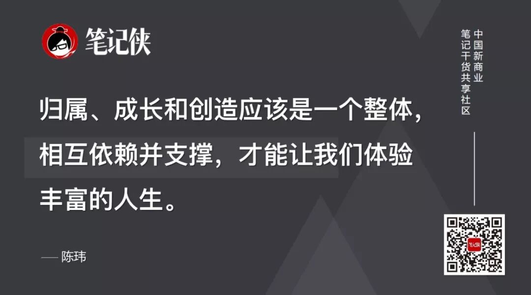 人生除了归属和成长,我还加了一个创造,需要Creating,三者统一缺一不可。