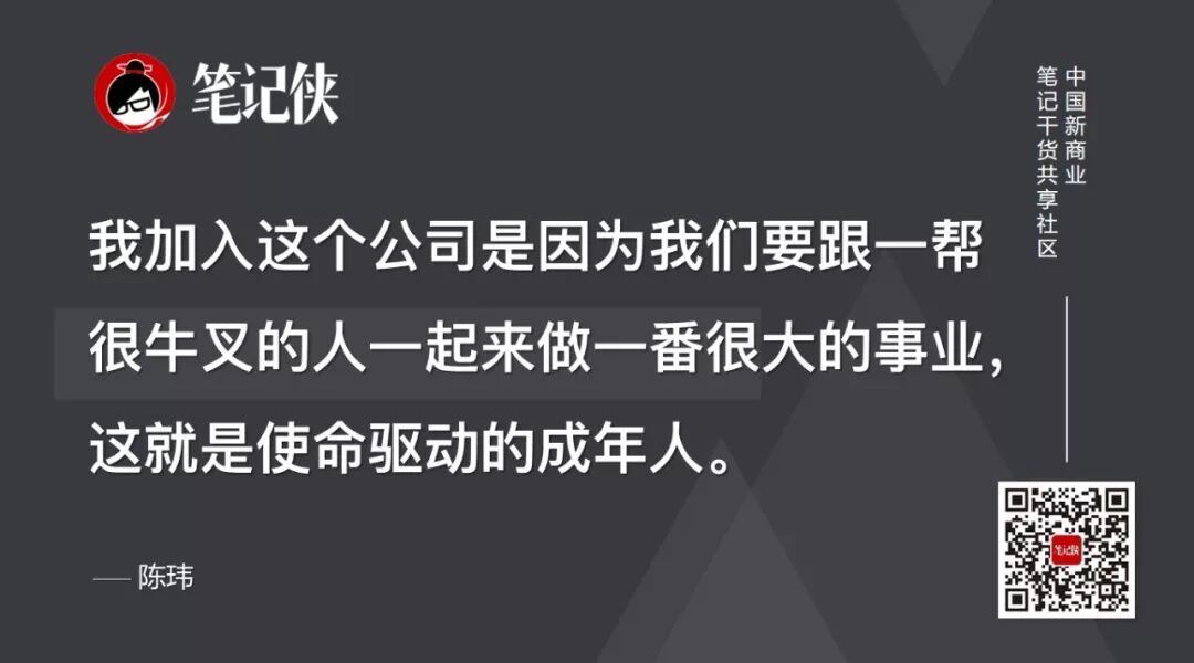 他认为我加入这个公司是因为我们要跟一帮很牛叉的人一起来做一番很大的事业,这就是使命驱动的成年人。